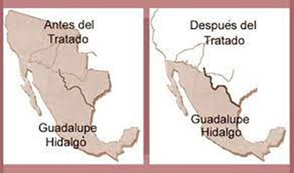 El Tratado de Guadalupe Hidalgo ( https://www.archives.gov/espanol/recursos-para-docentes/guadalupe-hidalgo ) ratificado el 30 de mayo de 1848, estableció que México cedería la mitad de su territorio: la totalidad de lo que hoy son los estados de California, Nevada, Utah, Nuevo México, Texas, Colorado, Arizona y partes de Wyoming, Kansas y Oklahoma.