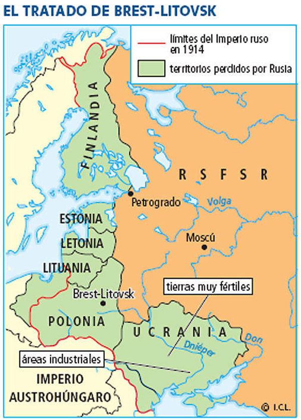 Los comunista rusos, lanzaron un llamamiento para que se abandonara el frente y cuando lo hicieron, las otras naciones interesadas en prolongar la guerra desistieron al instante ante el temor que les ocurriera lo mismo que al gobierno zarista, y los comunista rusos lo hicieron aun a costa de pérdidas importantes de territorio derivadas de los acuerdos de Brest-Litov. Lo importante para ellos era la destrucción de la antigua sociedad y la construcción de una de nueva: la sociedad socialista.