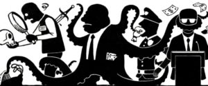 Normalizar y extender la pequeña corrupción, la pequeña delincuencia, hasta convertirla en un fenómeno de masas, sirve para enmascarar la gran corrupción y delincuencia asentada en Altos cargos de la Administración, en los Consejos de Administración de bancos y empresas. Y alimentar la propaganda y difusión de las violencias domésticas hacia criaturas, mujeres y ancianos, sirve de tapadera para enmascarar la violencia de clase que se da cotidianamente, a través de trabajos mal remunerados, ilegales, peligrosos, tóxicos, penosos, etc. que la enmascaran denominándola accidentes de trabajo.